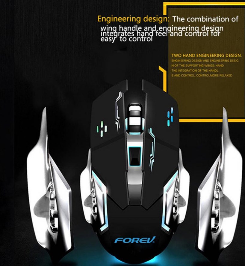 Mouse da gaming LED wireless con batteria ricaricabile incorporata nero FV-W502