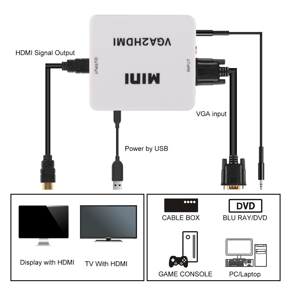 Viene utilizzato per convertire video VGA e segnale audio analogico da 3,5 mm nel computer in segnale HDMI e visualizzarlo sullo schermo grande dell'HDTV.