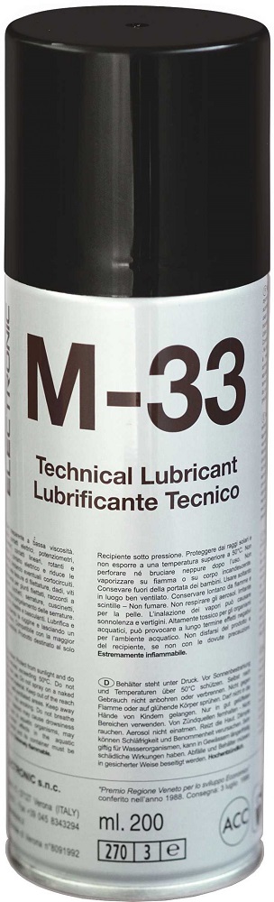 M-33 Lubrificante tecnico multiuso spray, trasparente e a bassa viscosità.