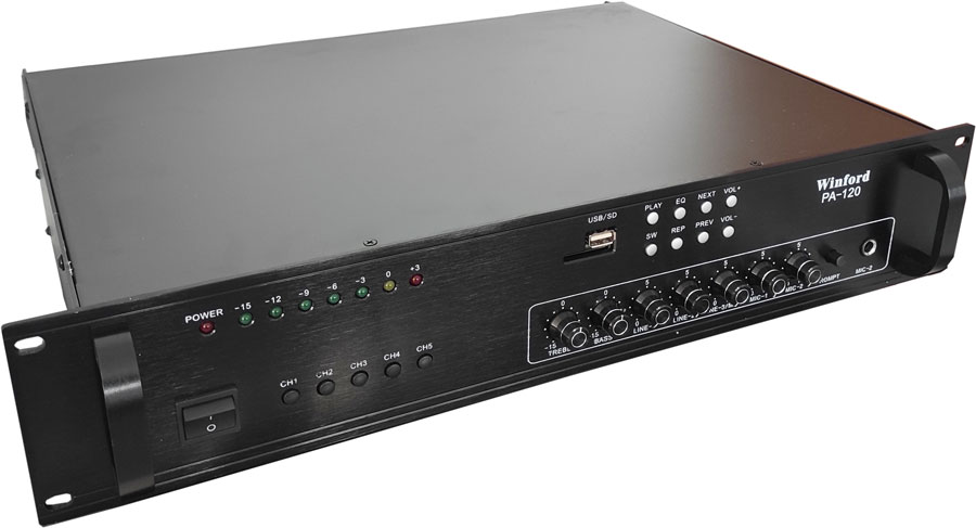 USB / SD 5 Channel 70V / 100V / 8 Ohm 120W PA-120 Audio Amplifier