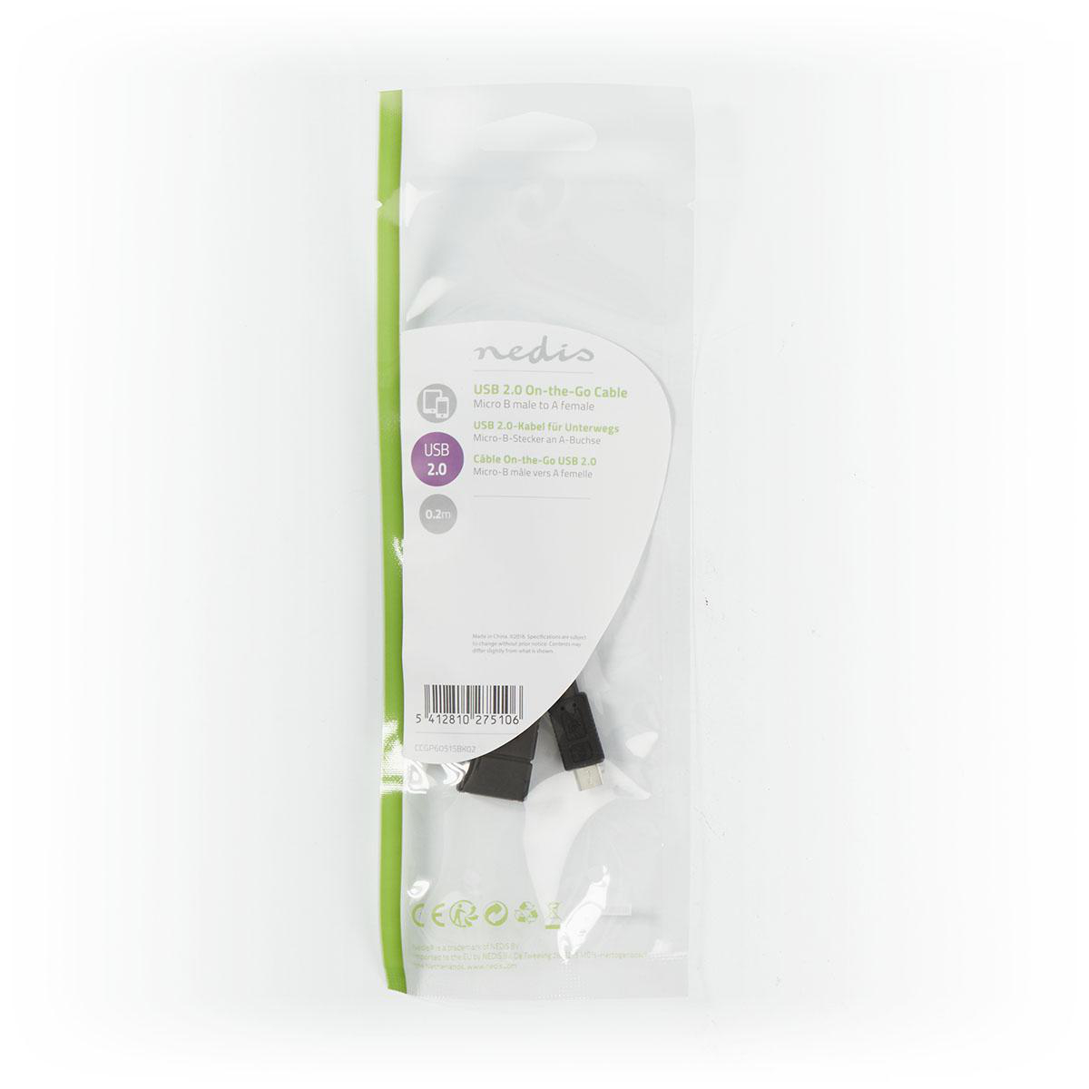USB 2.0 Micro B male - A female On-the-Go cable 0.2 m Black