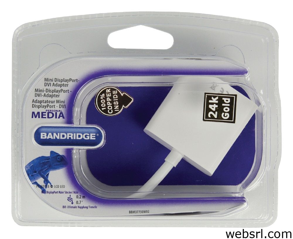 Mini DisplayPort Male-DVI-I 24 + 5-Pin Female 0.20m Bandridge adapter