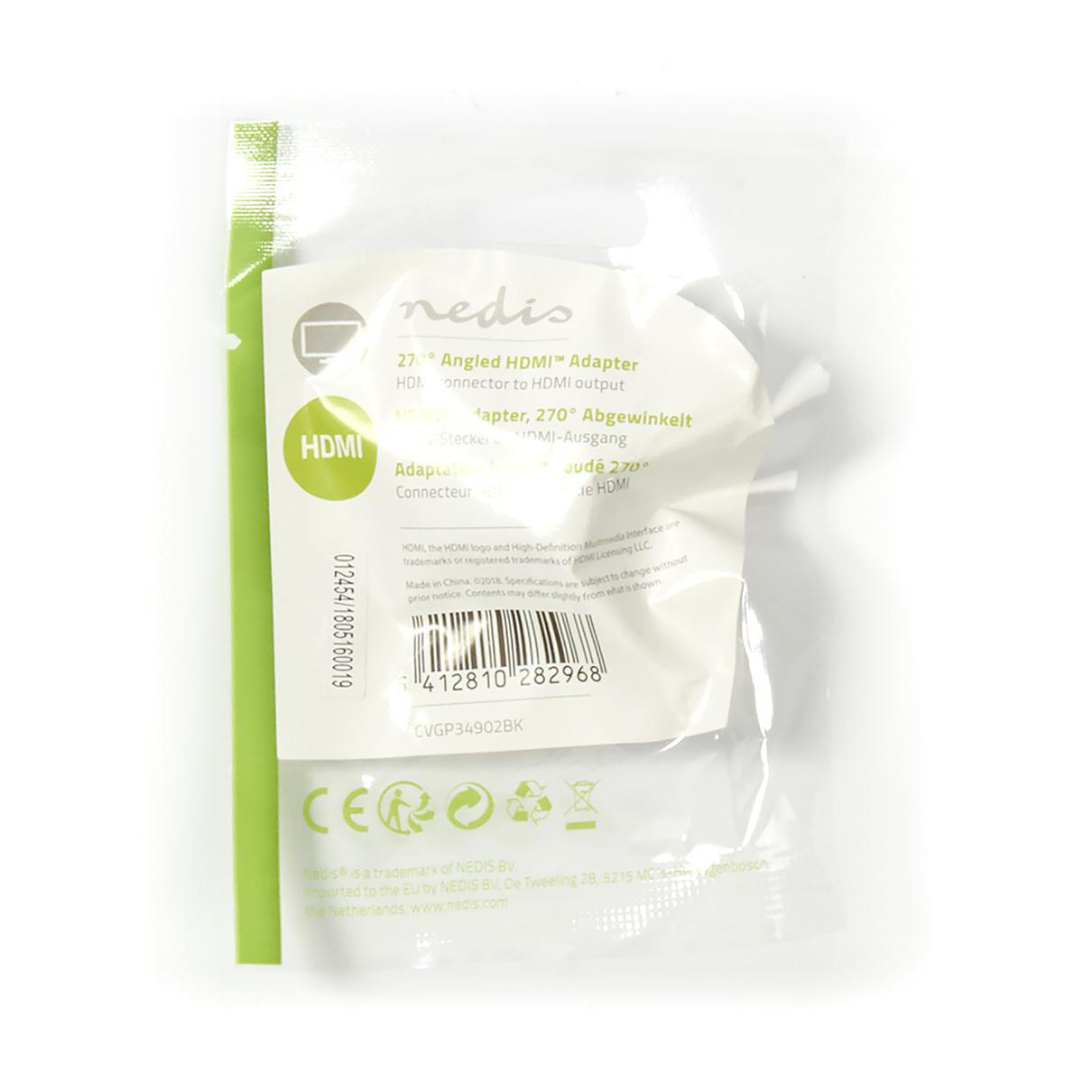 HDMI adapter HDMI female HDMI connector Angled 270° Black