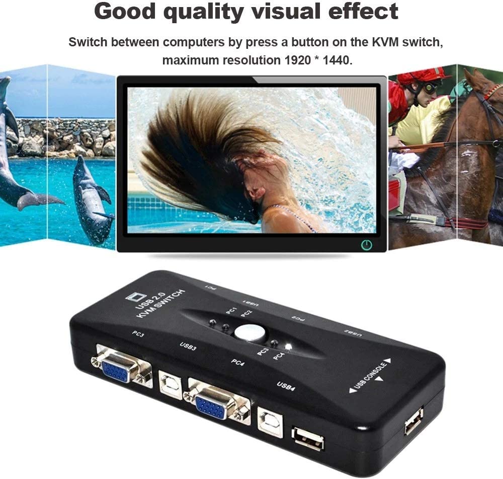 - Control 4 PCs on 1 Monitor: 4-Port KVM Switch Box allows you to connect USB keyboard, USB mouse and monitor to 4 PCs, easily controlled by the button on the top. It is compatible with 98/98SE/2000/ME/NT/XP/VISTA/XP 64bit/Vista 64bit/Win 7/Netware/Unix/Linux/Mac