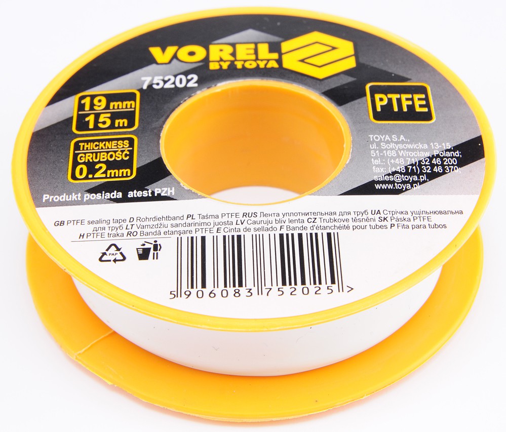 Teflon tape 15m 19x0.2mm Vorel