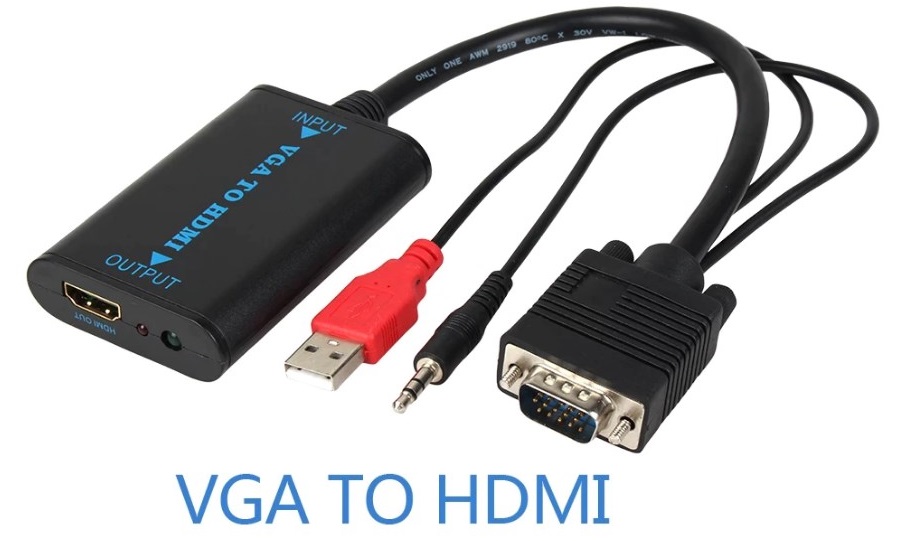 - Il cavo adattatore converte il segnale dalla porta VGA a HDMI