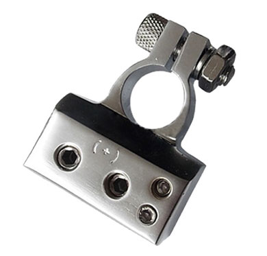 Morsetto batteria polo positvo (+).Dispone di 4 uscite con serraggio a vite per cavi con i seguenti diametri: